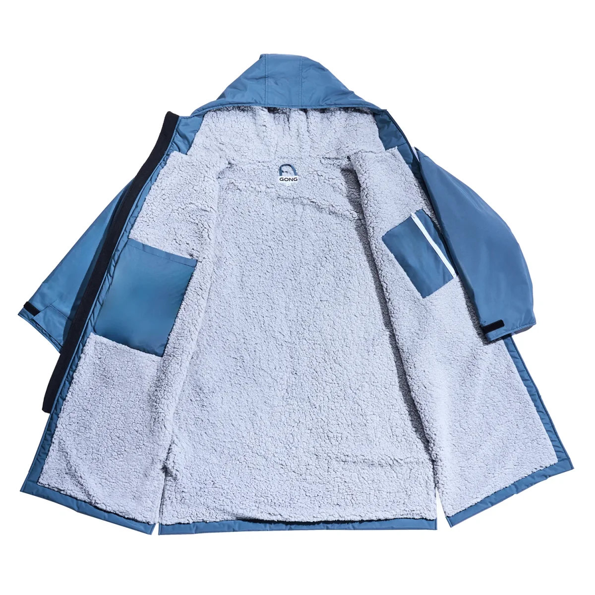 Tout est fait pour vous simplifier la vie : des manches larges à scratch moulé pour se changer facilement, zip de qualité à double curseur pour se donner plus d’aisance, une polaire molletonnée ultra douce à séchage rapide (220 gsm), un tissu en nylon enduit résistant à une pression d’eau de 3000 Pa (le plus élevé), ou encore de nombreuses poches.